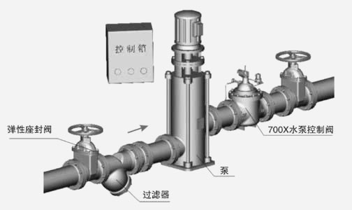 SHT700X 型水泵控制閥安裝于水泵出水口處,在水泵停止運(yùn)轉(zhuǎn)前,先行關(guān)閉主要閥到90%左右,當(dāng)水泵停止運(yùn)轉(zhuǎn)時(shí),再次關(guān)閉剩余的10%,可有效地保護(hù)水泵,防止水錘、水擊聲以及水泵倒轉(zhuǎn)。